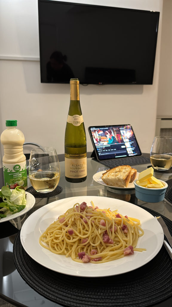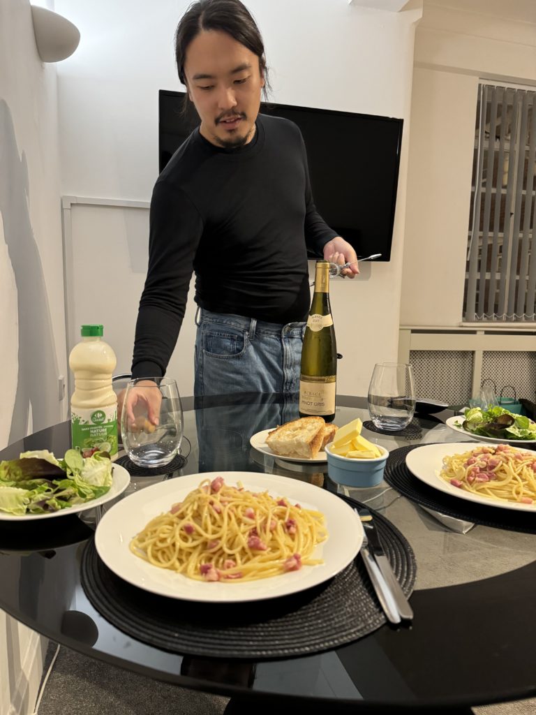 宿ついてから小一時間休憩して、りゅうがペペロンチーノつくってくれた〜〜!