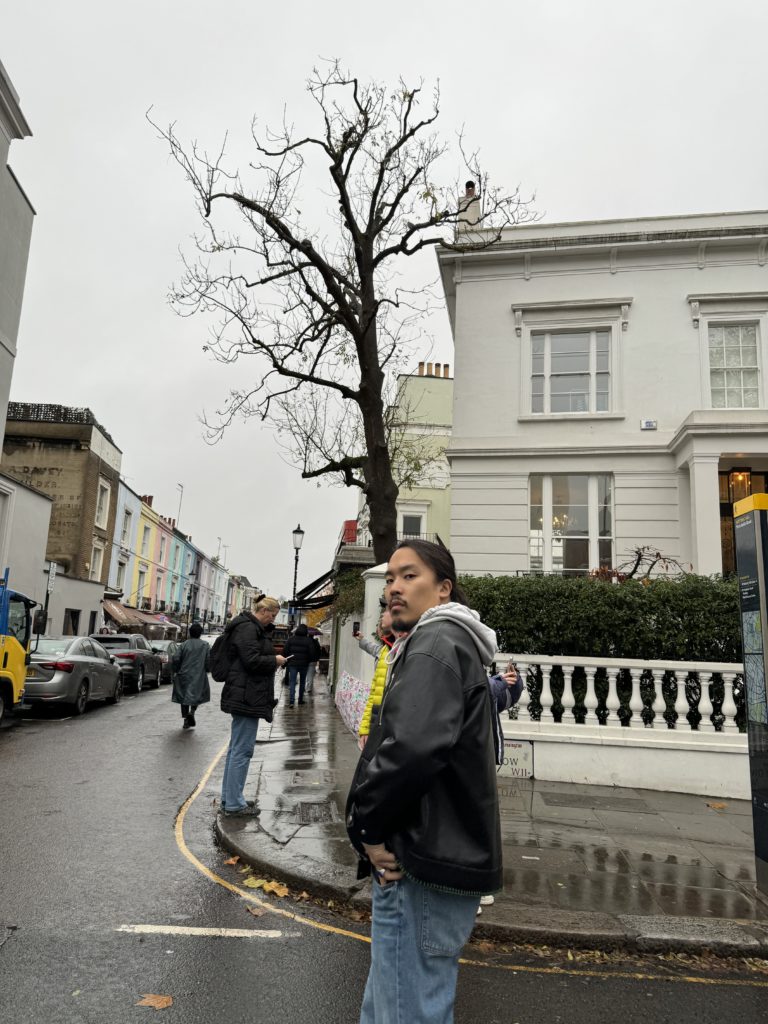 Notting Hillの駅ついたら、霧雨🌧️