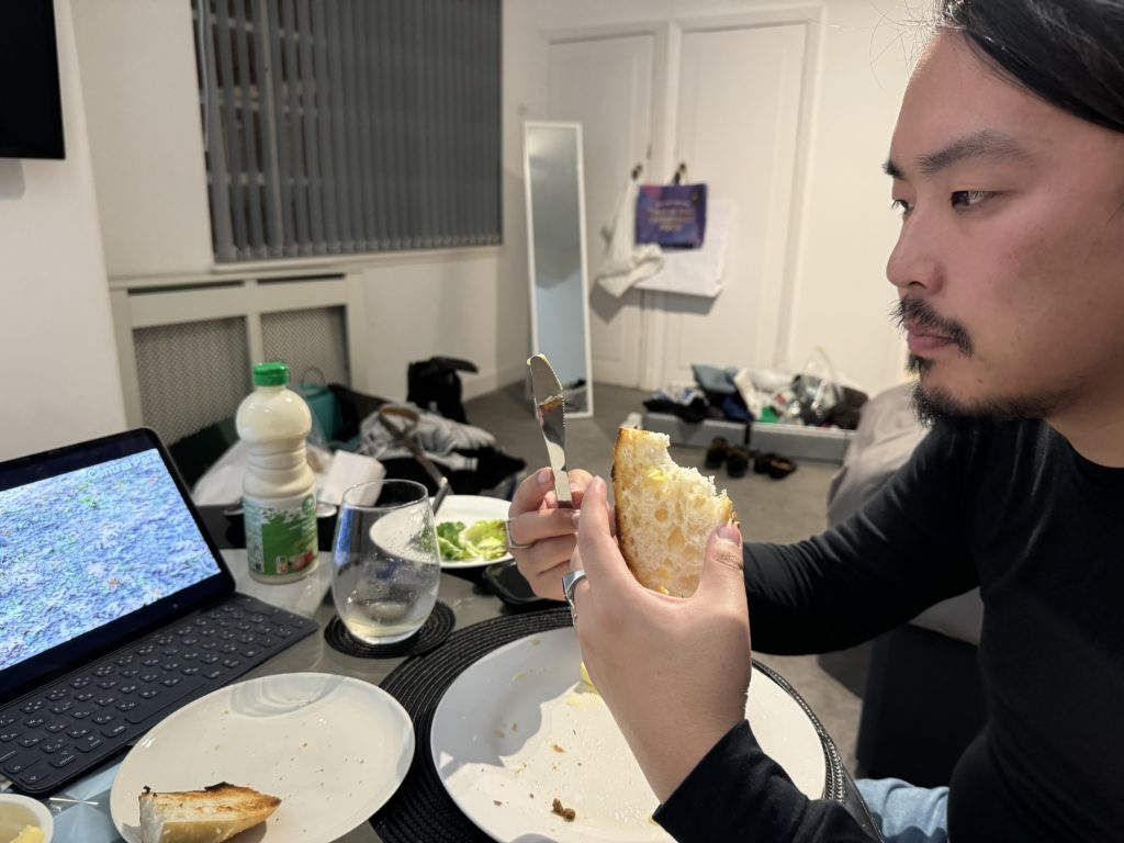 気休めの野菜とborough marketで買ったパン~もりもりのバターを添えて~も一緒に。