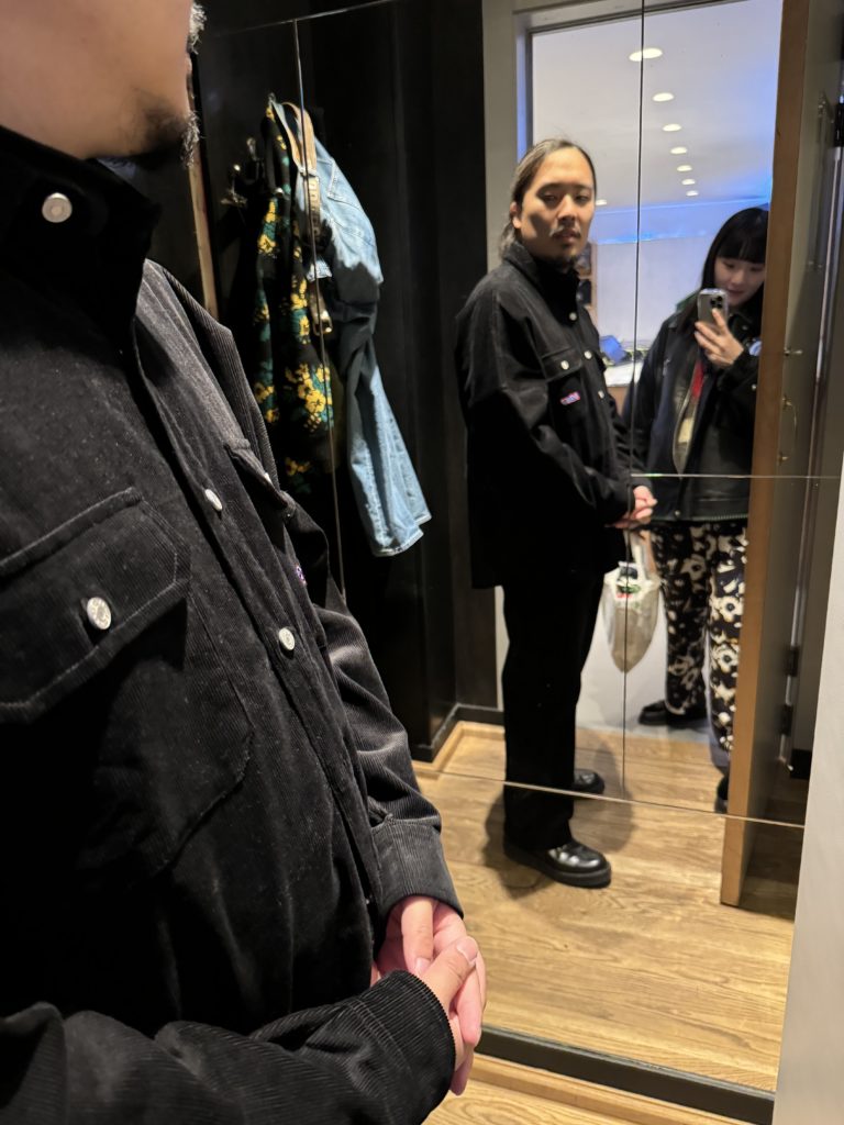 数日前の買い物の時から狙ってたセットアップ(↓森川さんとの夕食前撮影)がやっぱりほしいとのことで買いにゆきます。