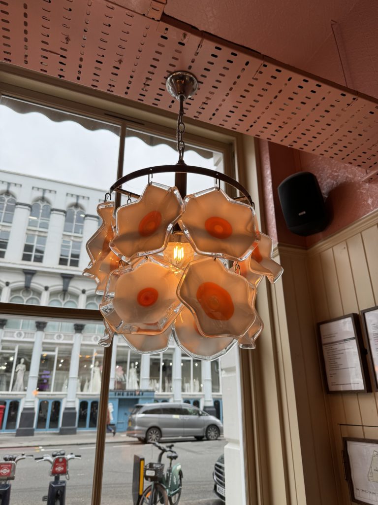 店内はすごくおしゃれ(目玉焼きランプかわいすぎた)で、朝食の種類もめっちゃ豊富。