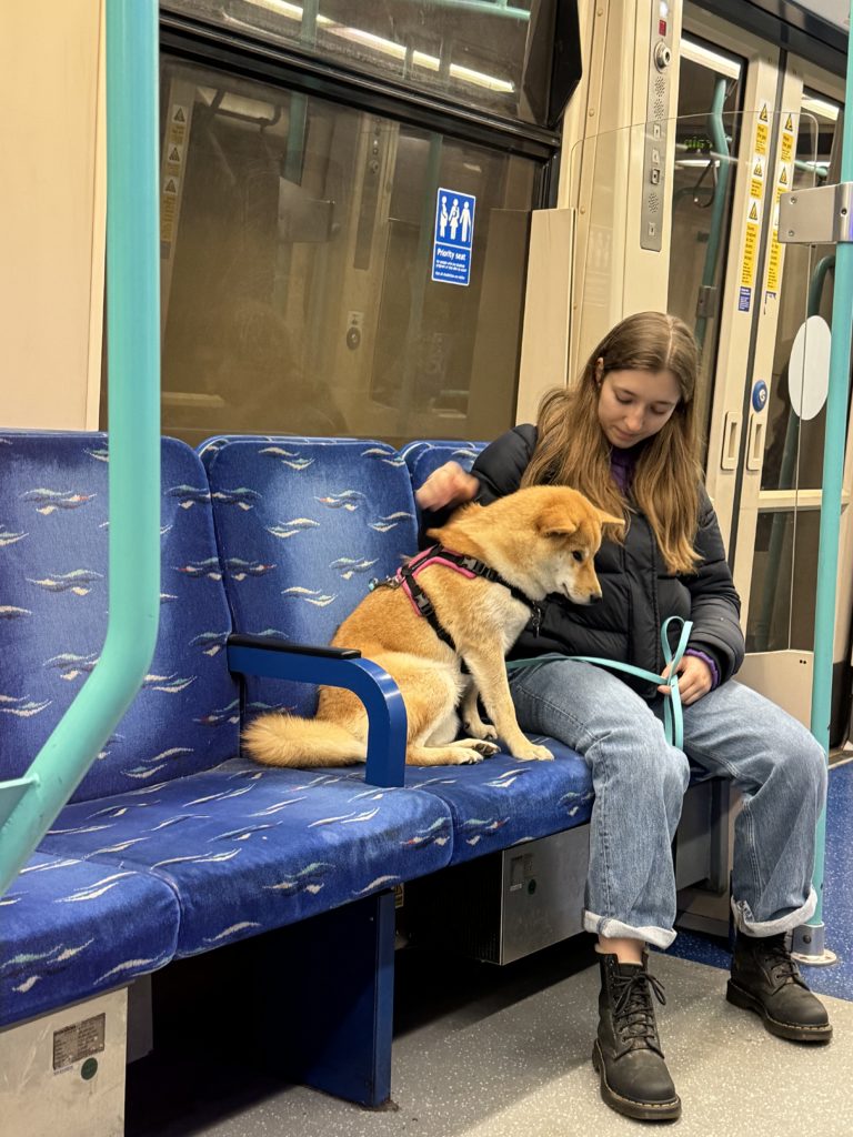 電車移動中、めちゃくちゃ可愛い子👧と可愛い子🐶がいたので盗撮。日本でも、ワンちゃんソファ座って良いと思うぅ(願望)