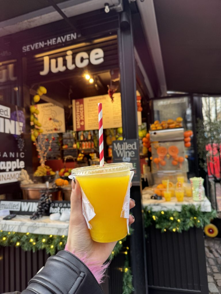 Greenwichのオレンジジュース満足してなかったので、こんなタイミングで搾りたてオレンジジュース屋さんを見つけたらもちろん買ってしまう。🍊