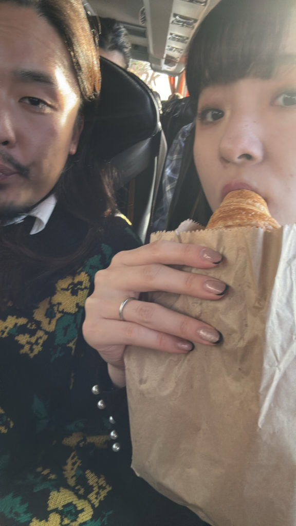とりあえず、バス乗り場にあった売店で私はクロワッサンを、りゅうはパンオショコラを購入。腹は減る。