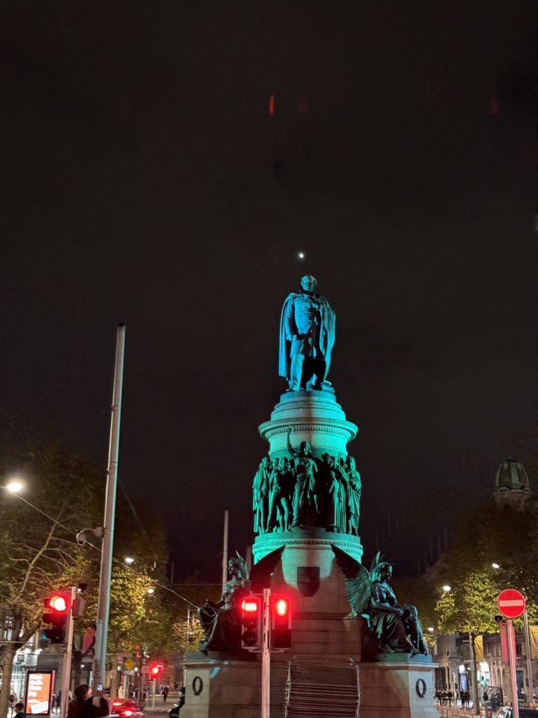 ホテルへの帰路、昨日の暴動のネットニュースでたくさん掲載されてたオコンネル像が夜空に輝いていました。笑